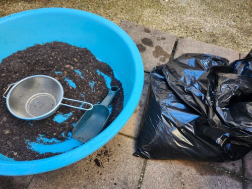 ふるいにかけて黒いビニール袋に入れました。