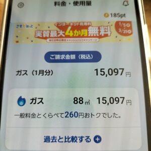 この記事が一人暮らし、冬のガス料金の参考になりますように。
