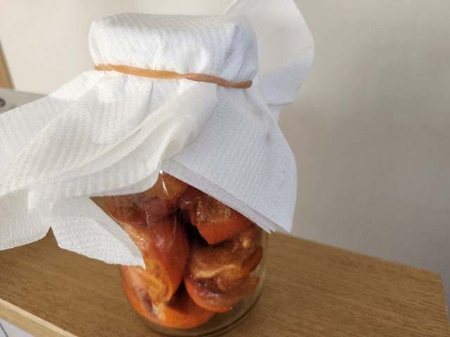 柿酢は3日ぐらいで水分が出てきたら毎日一回混ぜ続けるらしい。