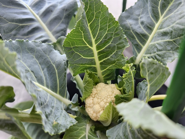 プランターのカリフラワーも直径3センチ以上になりました。嬉しい\(^o^)/