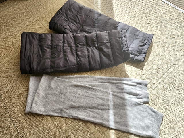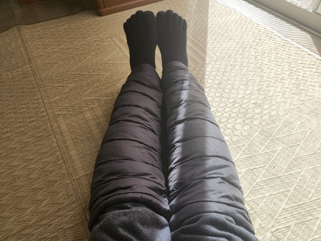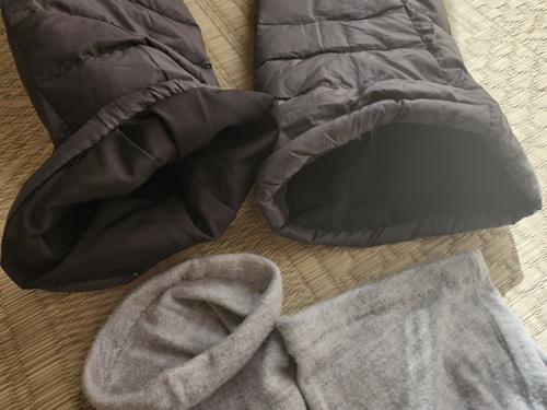 ニットのレッグウォーマーも温かいけど、ダウンのレッグウォーマーは特別温かいですね!