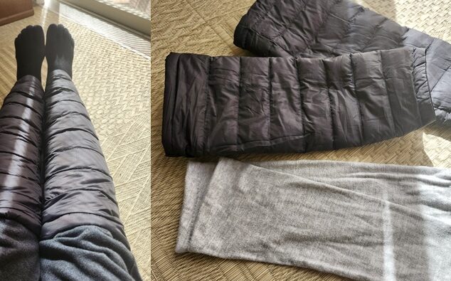 ニットのレッグウォーマーも温かいけど、ダウンのレッグウォーマーは特別温かいですね!