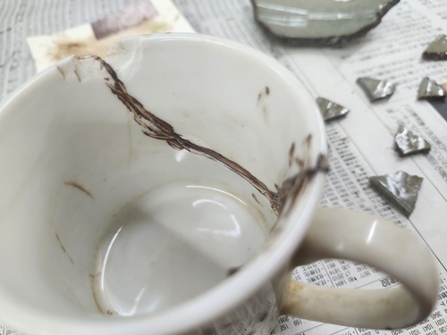 マグカップを漆で接着